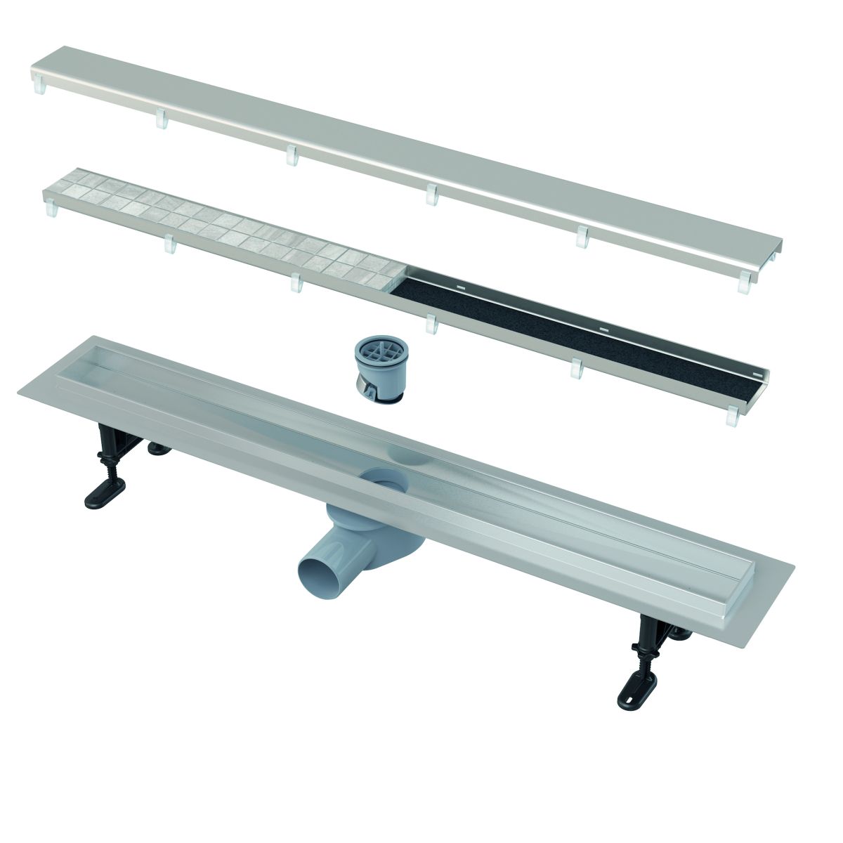 - desagüe lineal de acero inoxidable (material refinado grabado y pasivado, pulido electroquímicamente)