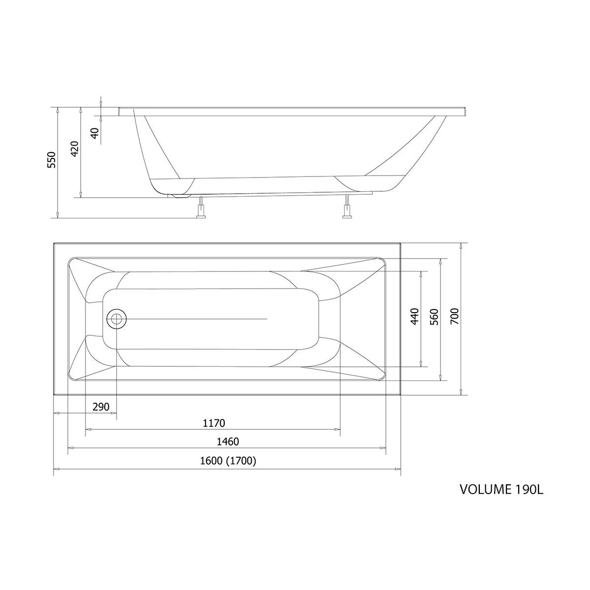 Aqualine Doubrava bañera rectangular 170x70 cm blanco A1770