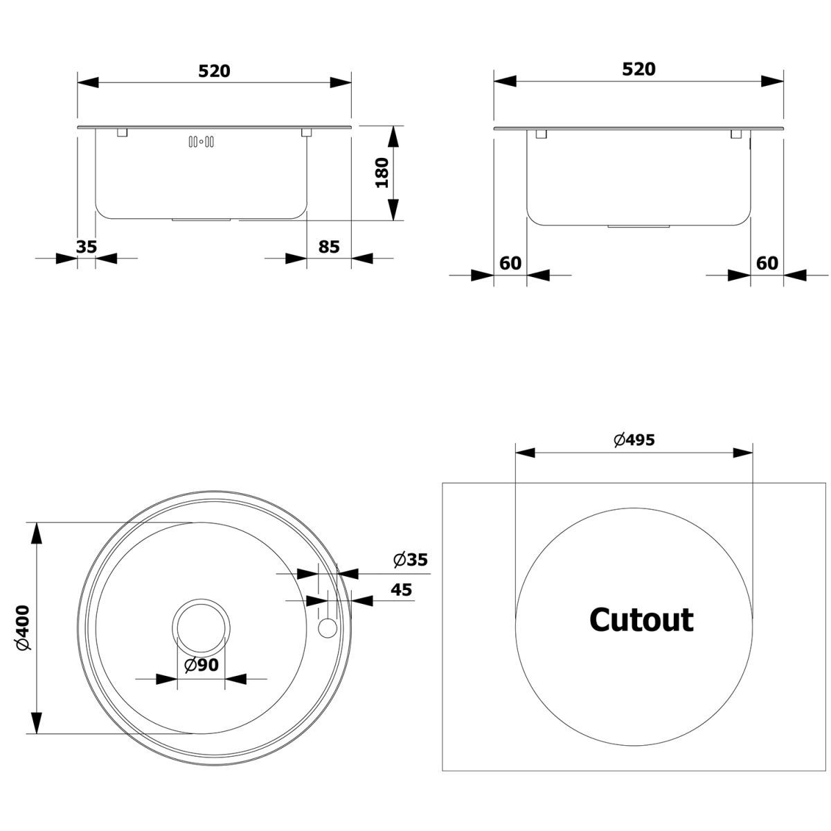 - dimensiones del fregadero: Ø 52 cm