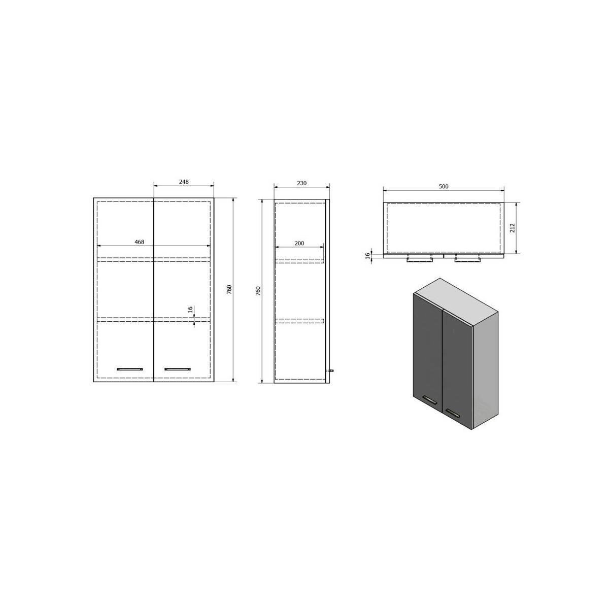 Aqualine Zoja armario 50x23x76 cm suspendido, lateral blanco 51302