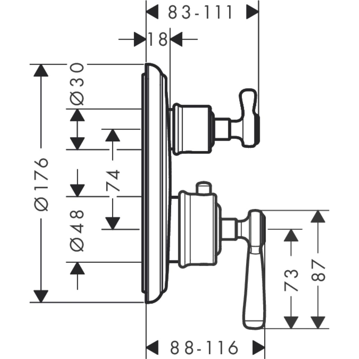 - volumen de suministro: placa metálica, maneta, manguito, unidad de instalación