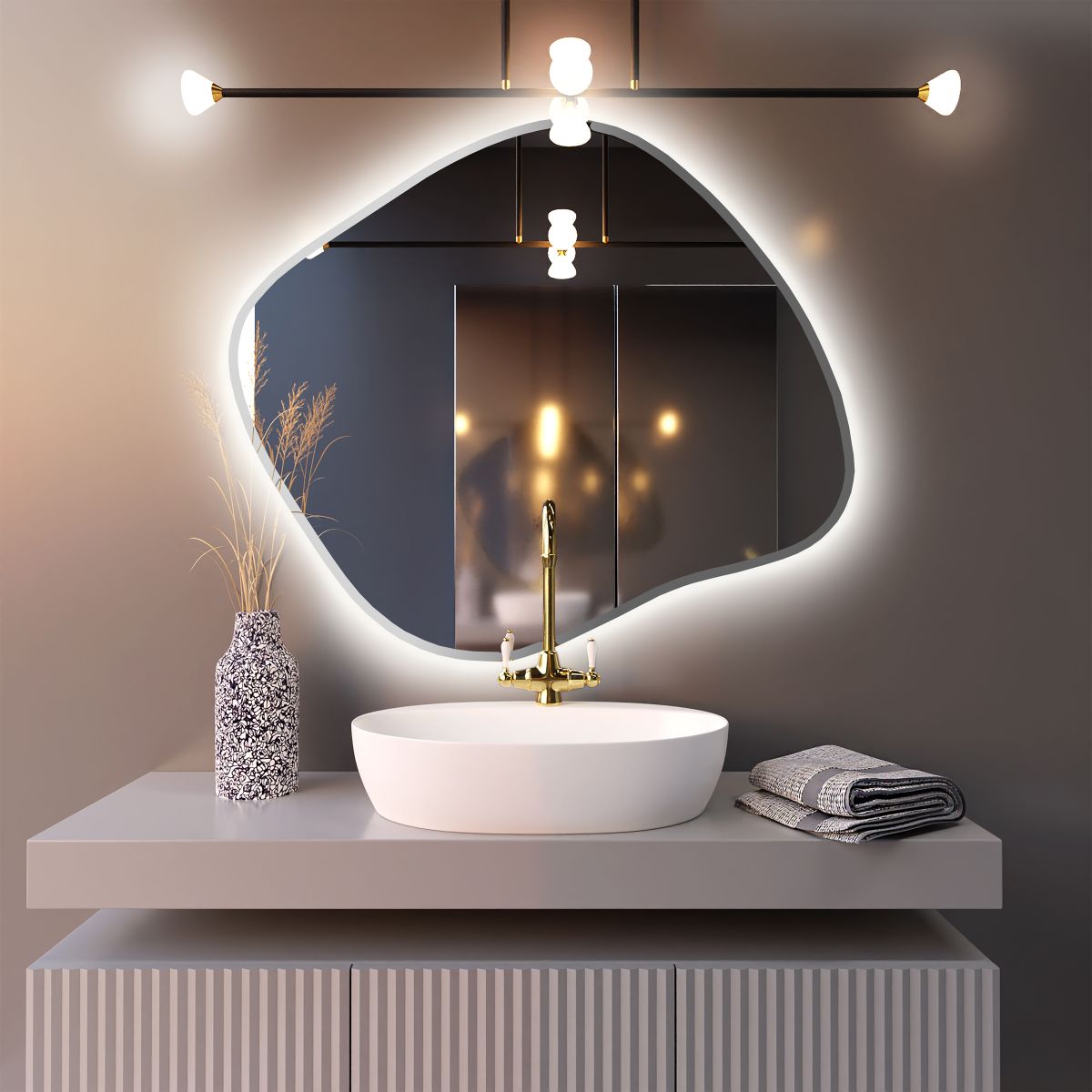Espejos iluminados con formas elegantes, ésta es la siguiente iteración de la colección Bright. Bright Stain es el accesorio de interior perfecto o el espejo de baño funcional iluminado por una luz LED suave y difusa. La inusual forma del espejo led, con su suave rayo de luz, le confiere a la habitación un aspecto fresco y a la vez ligeramente misterioso. El espejo es ideal para habitaciones pequeñas, que amplía ópticamente, también gracias a la luz.