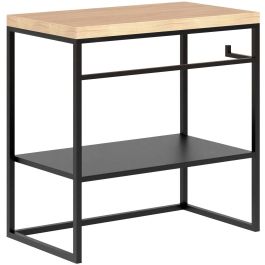 La consola de baño es uno de los muebles de baño con mejores prestaciones. Sustituye perfectamente a los armarios bajo encimera habituales. Modernista, fabricada en acero y madera natural, adecuada para su uso en el cuarto de baño. El producto puede utilizarse como mueble sobre el que se colocará el lavabo, o puede ser una parte independiente del mobiliario del cuarto de baño. La consola está fabricada con materiales de la más alta calidad. Está totalmente soldada, por lo que, como mueble, se caracteriza por una estabilidad extrema. La estructura es de acero, pintada con barnices resistentes a la corrosión. La encimera es de madera de roble con protección adecuada contra la humedad. Un mueble extremadamente funcional, ideal para cuartos de baño pequeños. Combina un mueble para lavabo, un toallero y un portapapeles. Y el estante bajo la encimera proporciona espacio de almacenamiento adicional. El estilo minimalista, sencillo y casi austero de la consola hace que el producto sea adecuado para interiores de loft, interiores modernos y, gracias a la madera natural, también para interiores rústicos.