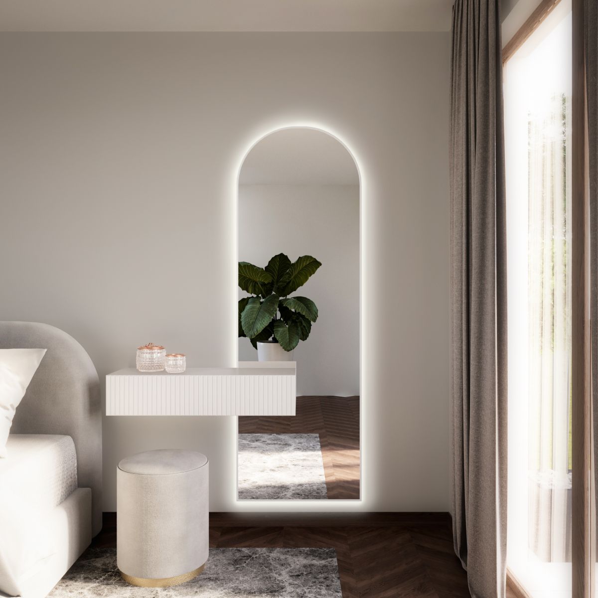 El espejo aporta a la habitación un ambiente muy acogedor, incluso íntimo, aderezado con un toque de modernidad. Es un producto de primera clase, fabricado en Polonia. Combina estilo y funcionalidad. La superficie del espejo está rodeada por un marco minimalista en cuatro colores a elegir: blanco, negro, plateado y dorado. Disponible en varios tamaños.