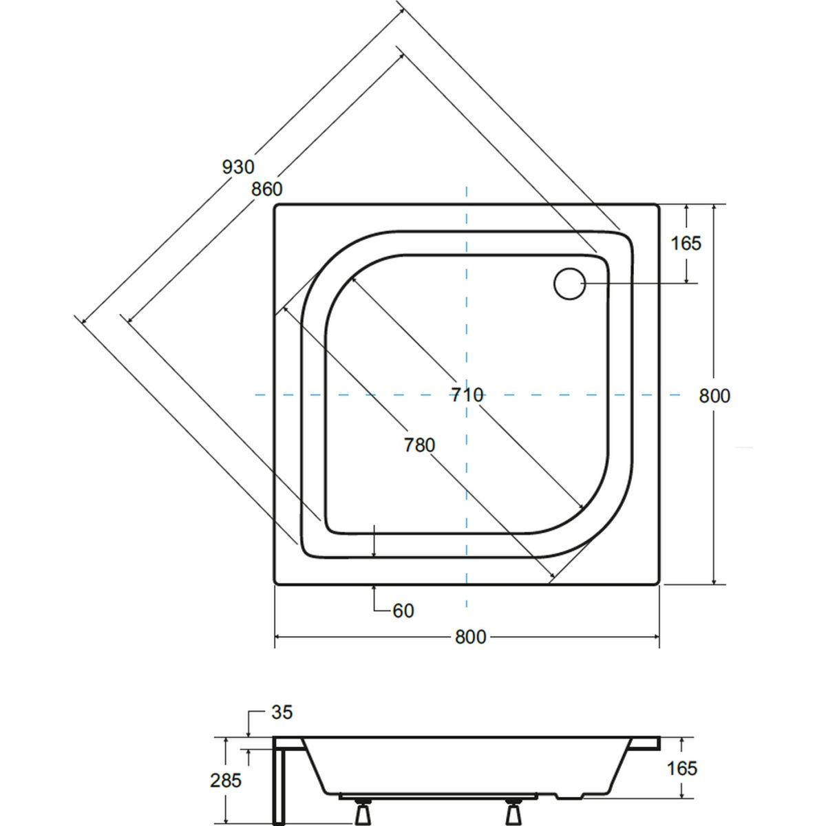 Besco Ares plato de ducha cuadrado 80x80 cm blanco #BAA-80-KW
