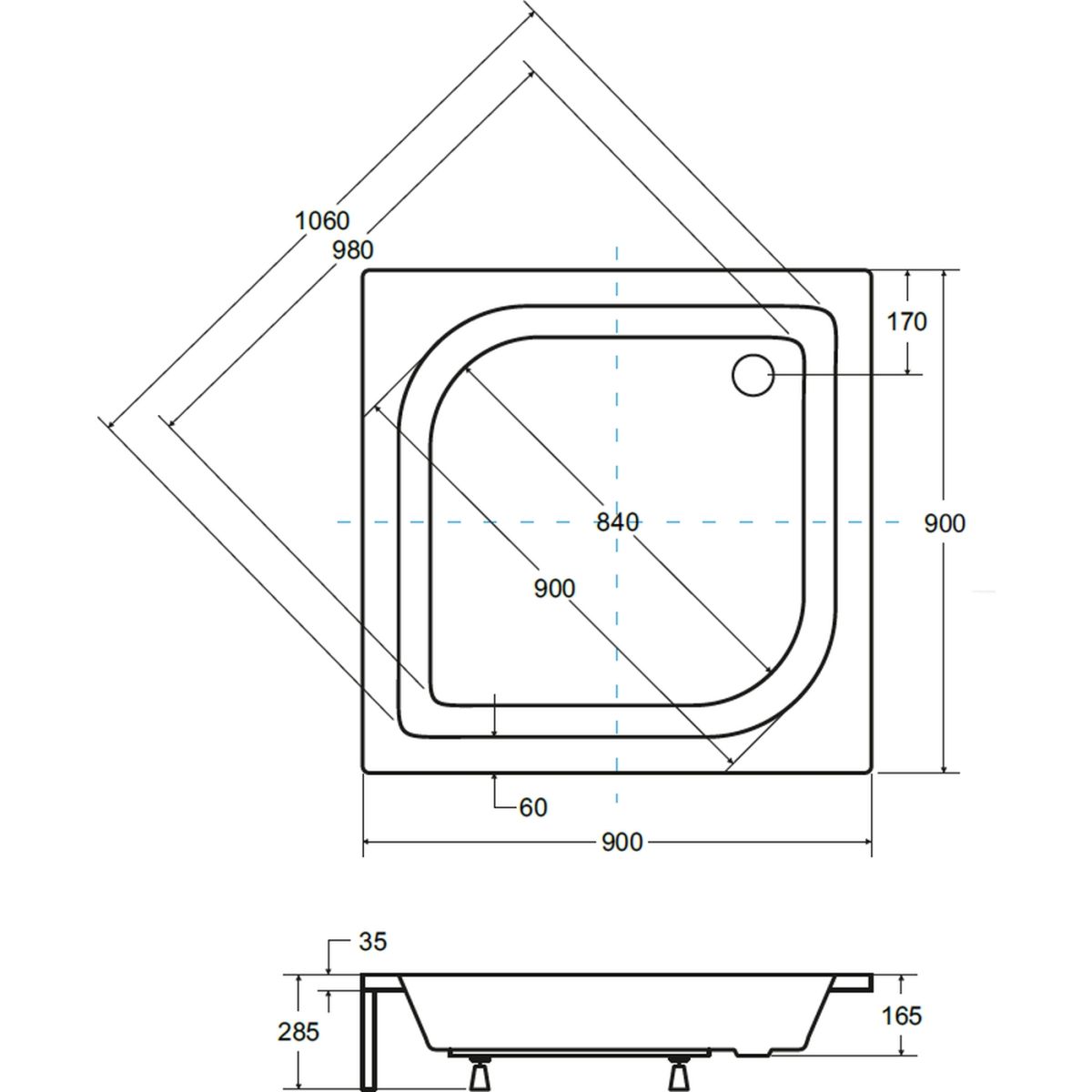 Besco Ares plato de ducha cuadrado 90x90 cm blanco #BAA-90-KW