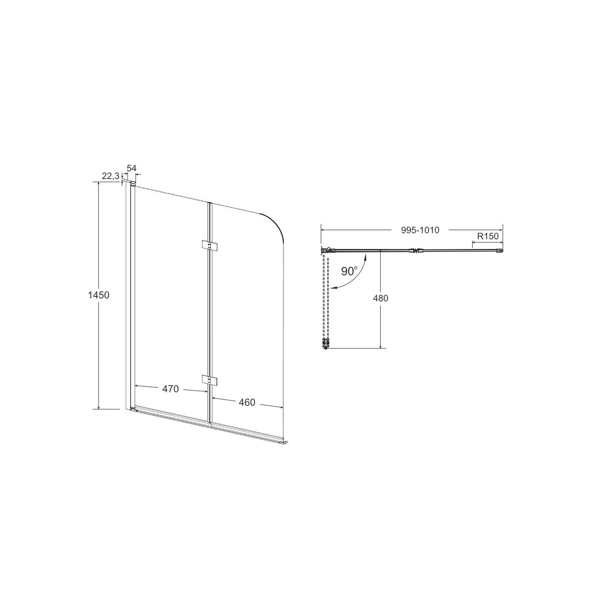 Besco Avigo mampara de bañera 100 cm dos piezas cromo brillo/vidrio transparente PNA-2S