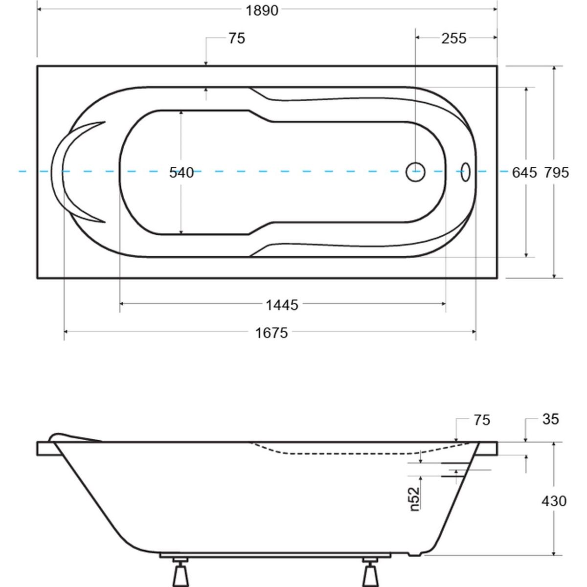 - El orificio de desagüe se encuentra en el lateral de la bañera.
