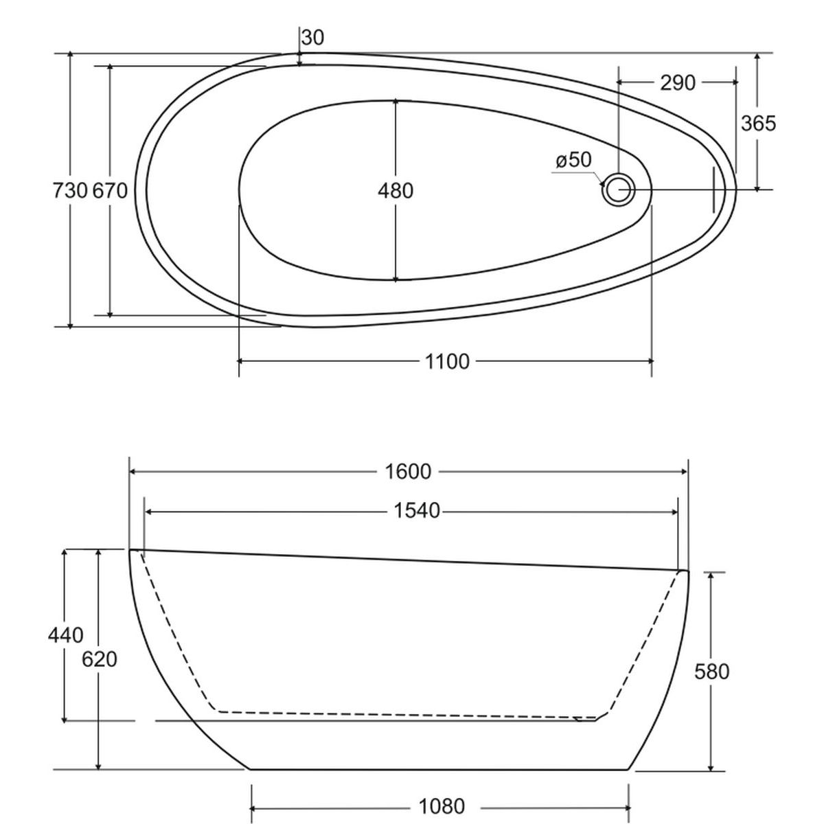 Besco Goya bañera exenta 160x73 cm oval blanco #WAS-160-G