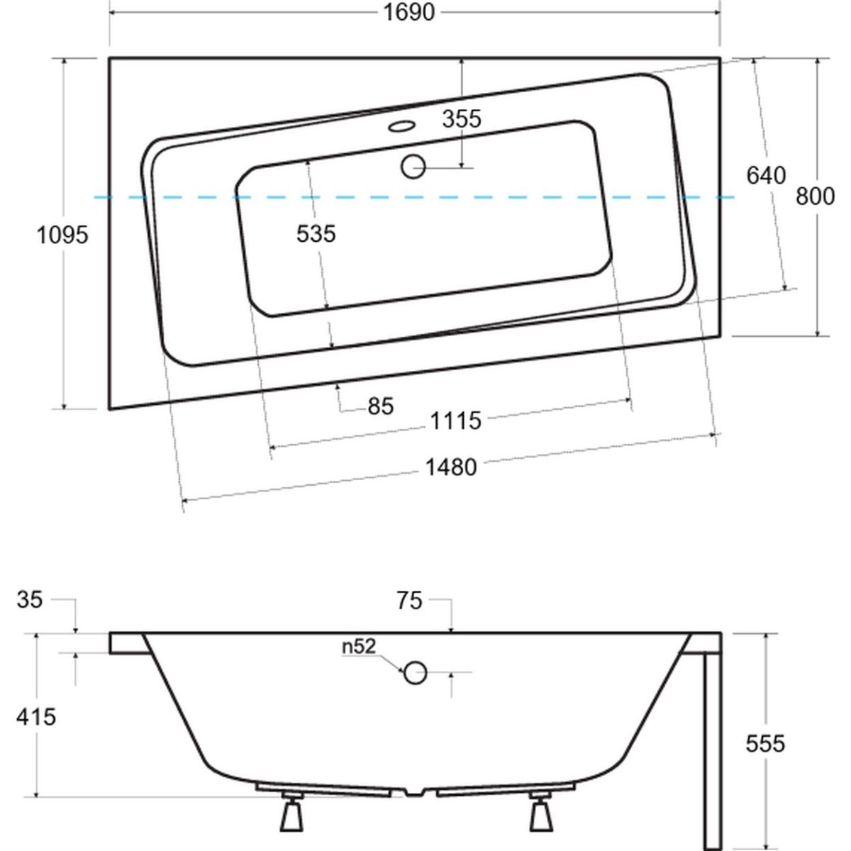 - lado más largo 169 cm