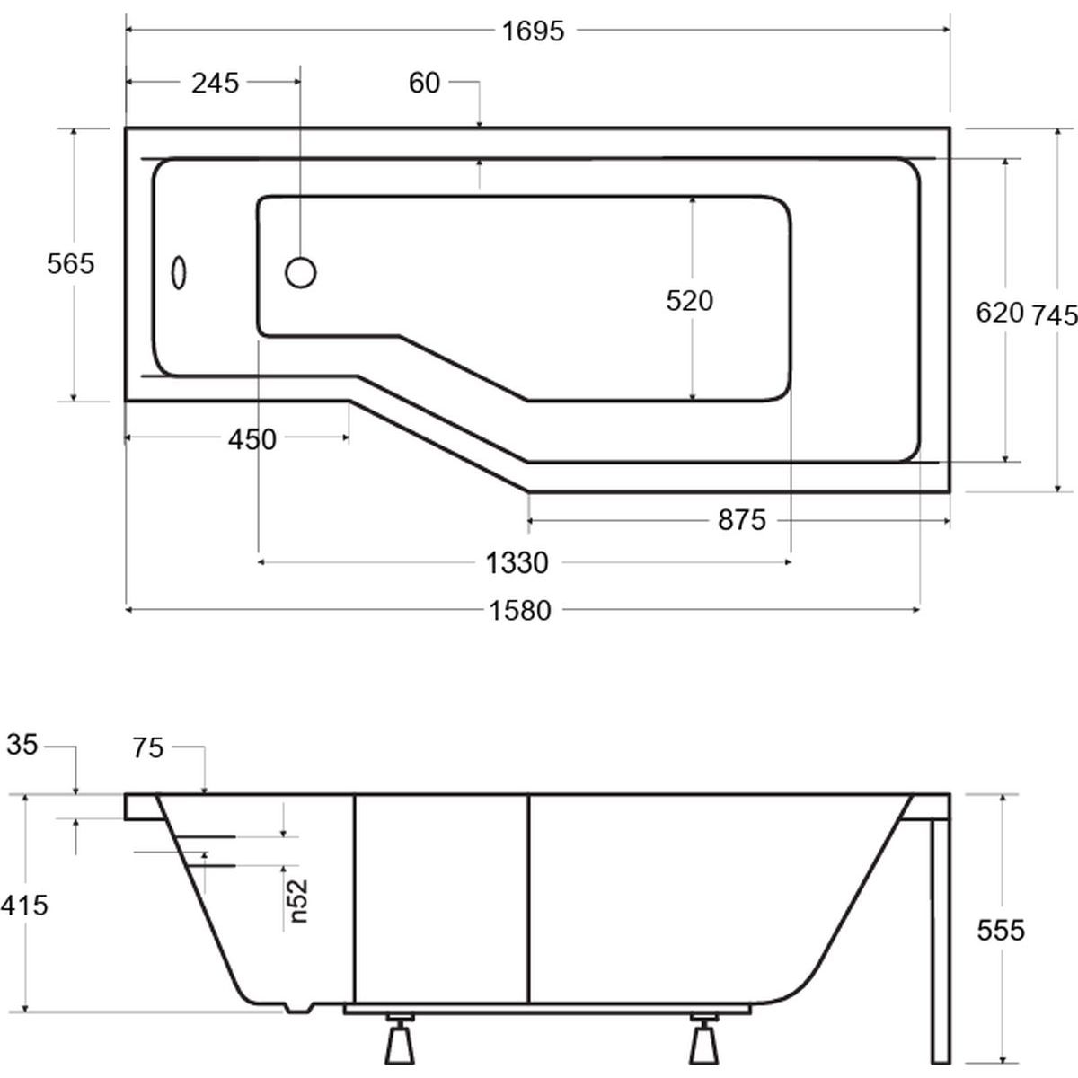 Besco Integra bañera de esquina 170x75 cm derecha blanco #WAI-170-PP