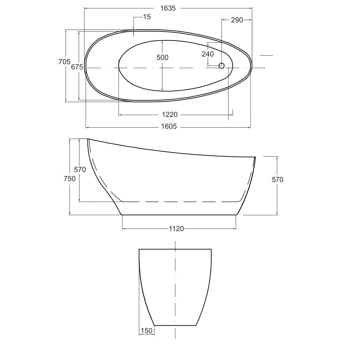 Besco Keya bañera exenta 163.5x70.5 cm oval bicolor #WMMC-165K