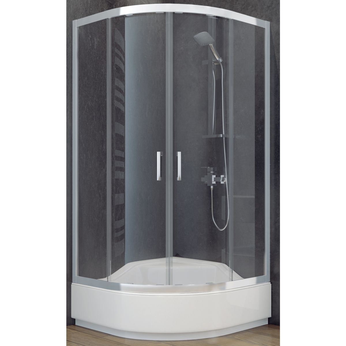Besco Modern 165 cabina de ducha 80x80 cm semicircular cromo brillo/vidrio con tono grafito MP-80-165-G