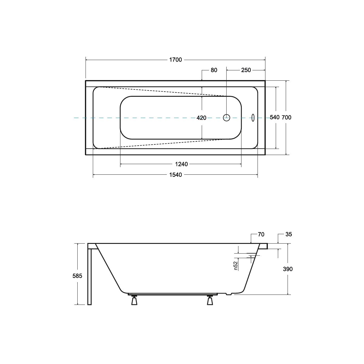 Besco Modern bañera rectangular slim 170x70 cm blanco #WAM-170-SL