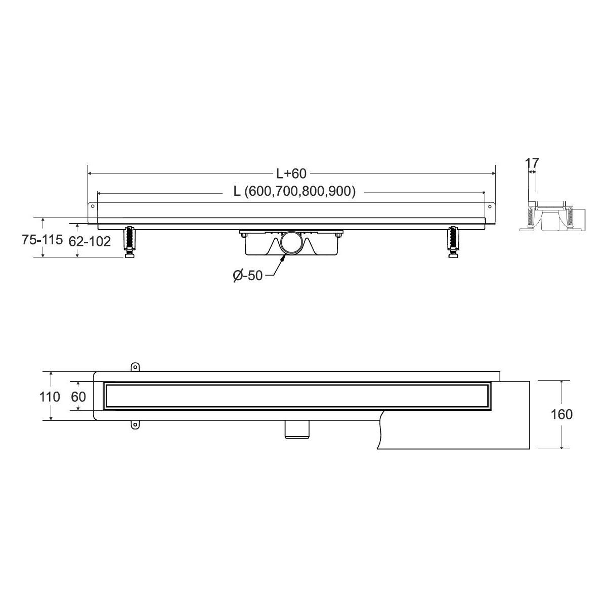 - incluye: canalón con sifón y pies de montaje, rejilla y alfombrilla de sellado