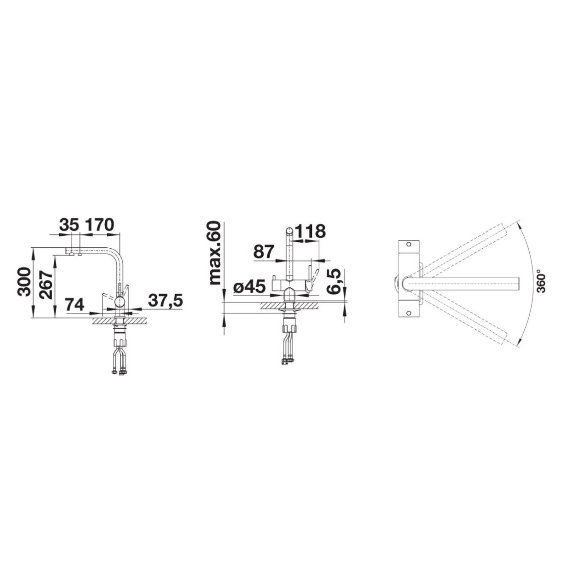 - 3 mangueras de conexión flexibles de 45 cm de longitud y una tuerca de 3/8" garantizan una instalación rápida y segura