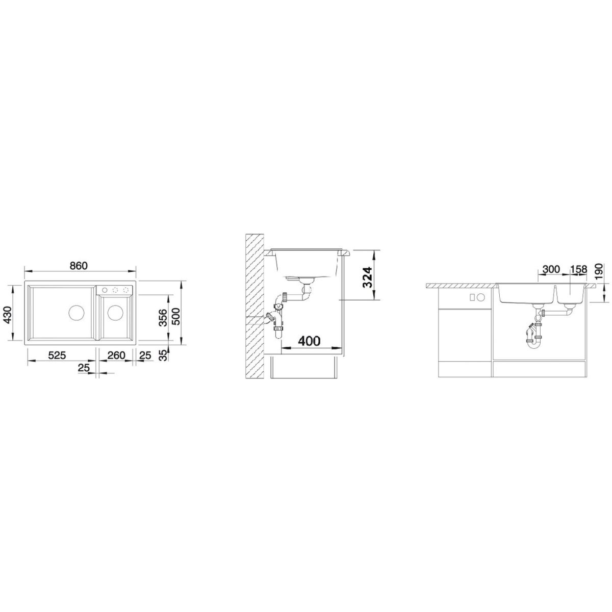 - el fregadero encastrado se puede montar bajo encimera con el kit de montaje (se vende por separado)