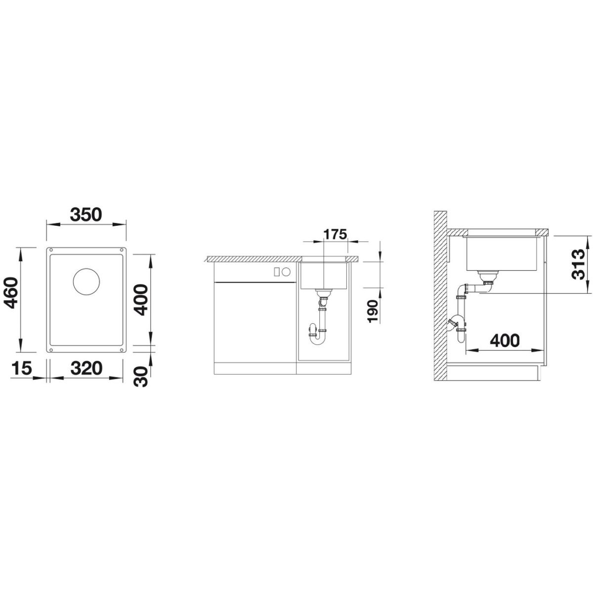 Blanco Subline 320-U fregadero de granito 40x32 cm gris/grafito/ónix 523414