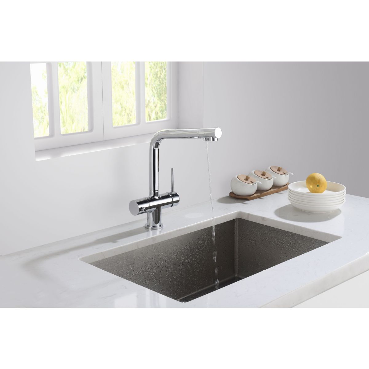- 2 aireadores, cuatro entradas de agua: agua caliente y fría, agua pura filtrada en dos versiones: agua pura y agua mineralizada