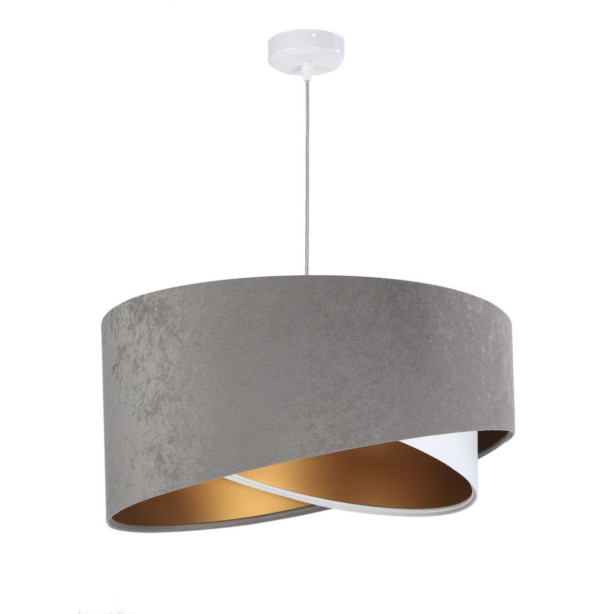 Pantalla de tejido (microfase) sobre plástico PVC con centro dorado. Parámetros de la luminaria: 1 x E27 max 60 W. Parámetros del faro: plástico, 10 cm x 2 cm. Longitud del cable: máx. 80 cm, ajustable. Color del cable: transparente. Se pueden utilizar bombillas LED.