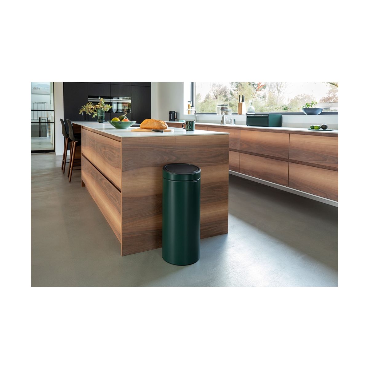 Contenedor táctil de Brabantia con capacidad para 30 litros. Basta con tocar la tapa para que se abra suavemente. Es muy fácil de abrir, cambiar las bolsas de basura y limpiar. Este contenedor táctil tiene forma redonda, es resistente y protege el suelo con un borde protector. Disfrute de un uso intensivo y sin complicaciones