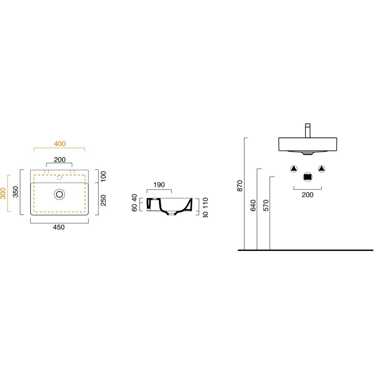 El precio se refiere al lavabo propiamente dicho con 1 agujero pretaladrado sin barandillas.