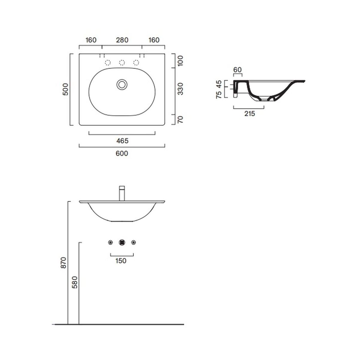 Catalano Sfera lavabo 60x50 cm rectangular clásico-para mueble blanco 0520610001
