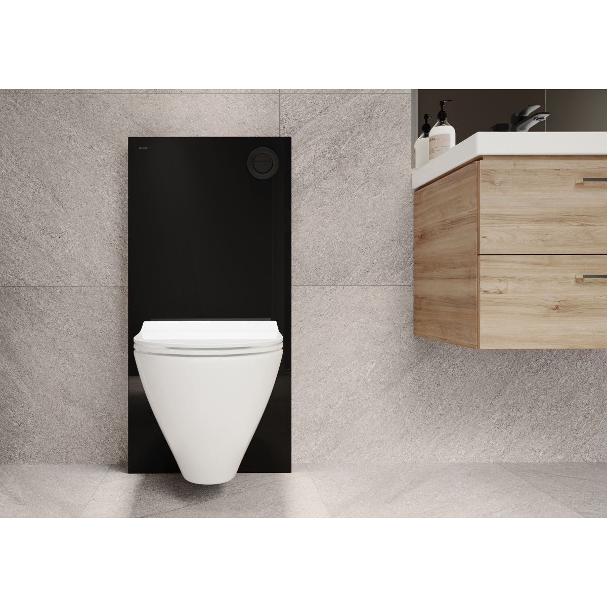 El marco está equipado con un botón de descarga neumática en negro mate y es apto para un sistema de doble descarga: 2/4L, 3/5l (ajustes de fábrica) o 3l/6l.