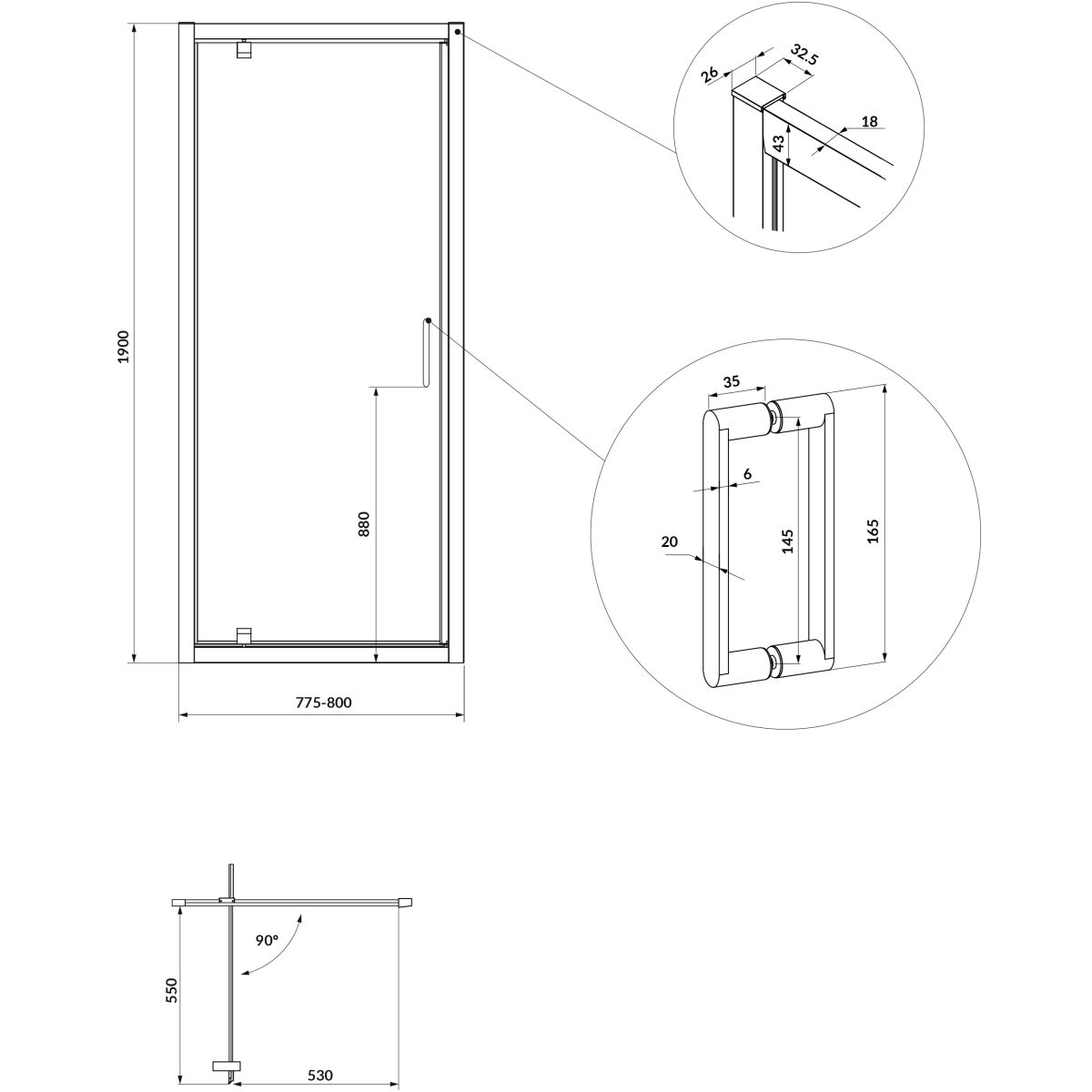 Cersanit Arteco puerta de ducha 80 cm oscilante cromo brillante/vidrio transparente S157-007
