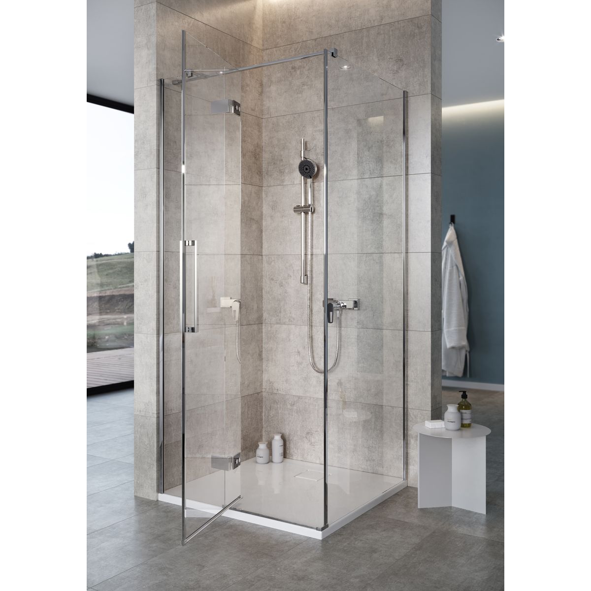 La colección CREA de mamparas de ducha es una colección única que ofrece muchas soluciones interesantes para el usuario. La bisagra plegable de cara transparente con una sencilla función de elevación encaja perfectamente con las tendencias actuales. El cristal de 8 mm de grosor y los 200 cm de altura de la mampara son una ventaja que no se puede pasar por alto. Todo ello se complementa con un perfil de pared estéticamente agradable con montaje oculto, un tirador metálico largo y un canalón que evacua el agua de la puerta a la mampara de ducha.