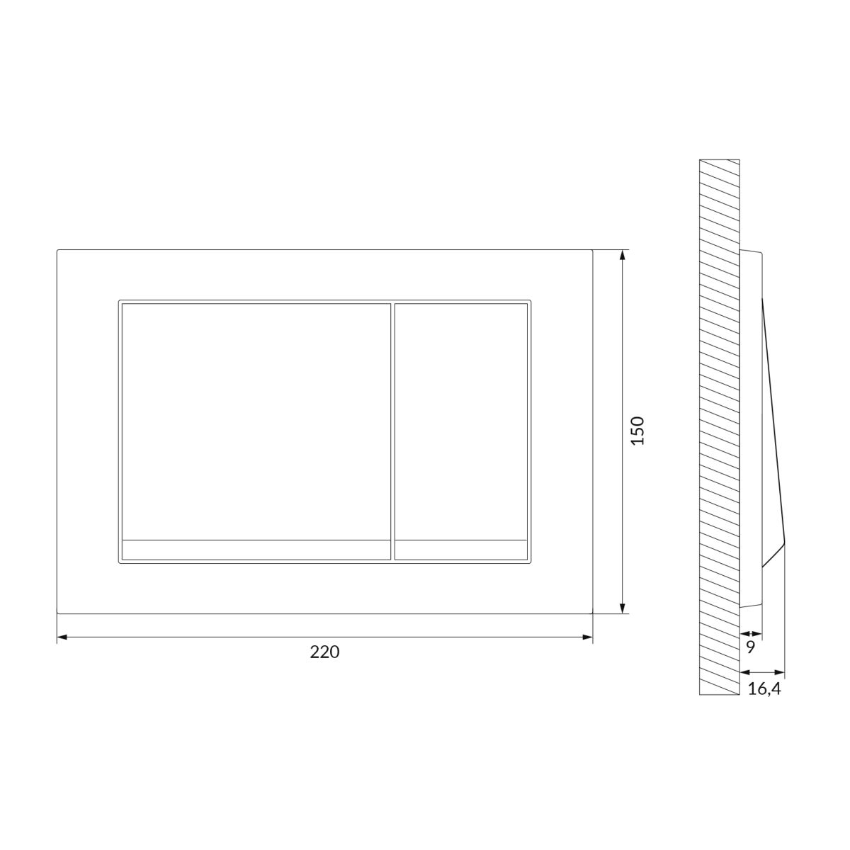 La tecla ENTER II se distingue por su diseño sencillo y estético. Dispone de grandes teclas rectangulares que sobresalen en ángulo con respecto al marco y la pared. Gracias a la ligera inclinación el uso resulta muy cómodo. El botón está fabricado en plástico con acabado cromado mate. La placa de empotrar es compatible con los sistemas de instalación pre-pared AQUA MECH. Coopera con SYSTEM FRESH, que es una solución ideal en conexión con la tecnología CleanOn sin brida, donde la falta de brida no excluye el uso de agentes refrescantes. Esta solución completa y moderna garantiza una higiene integral en el inodoro. El refinado diseño del botón garantiza una instalación fácil y rápida.