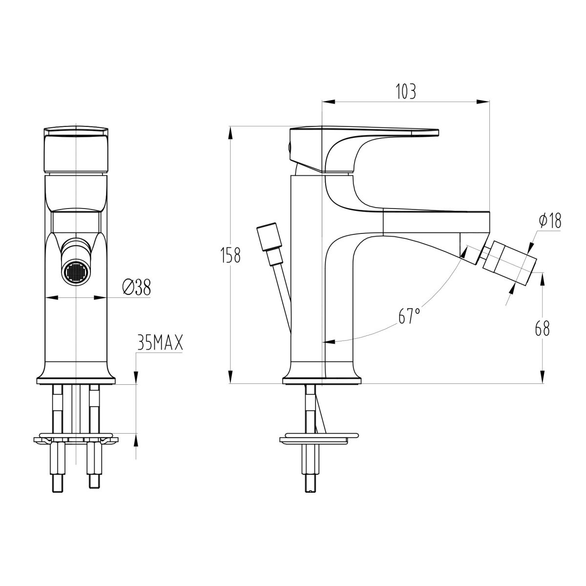 El mezclador monomando para bidé de la colección INVERTO está equipado con un aireador Cersanit Water Save y un cabezal cerámico de 28 mm, que permite regular suavemente el caudal de agua durante toda su vida útil. La grifería dispone de mangueras de conexión flexibles Eco EPDM. Las mangueras tienen un certificado WRAS que confirma su alta calidad: un revestimiento especial amortigua el interior de las mangueras para que el agua no cambie de sabor ni de olor. El producto tiene una garantía de 12 años para el cuerpo y de 5 años para el cabezal. El juego incluye un asa adicional con un diseño modernista en dorado.