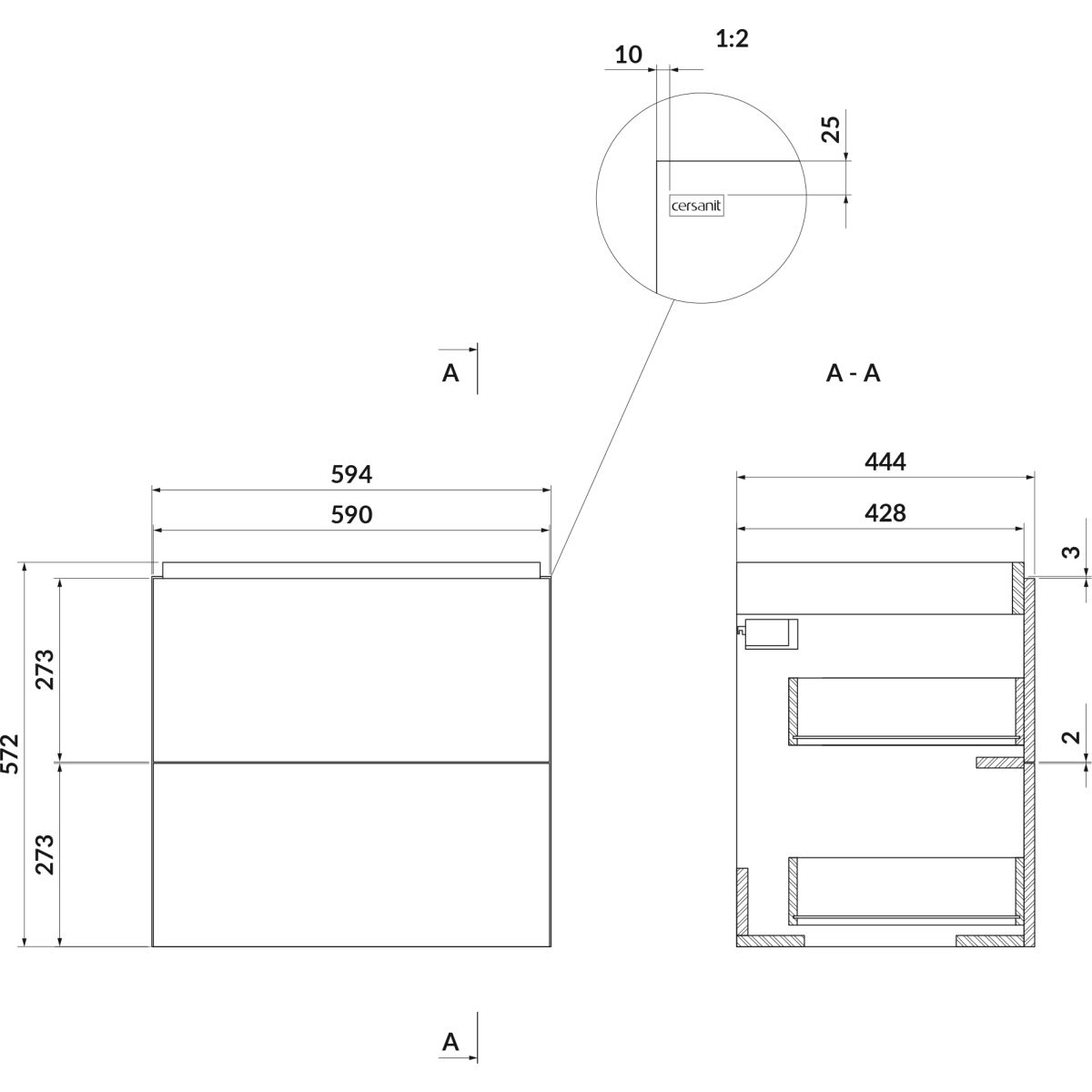 Cersanit Larga armario 59.4x44.4x57.2 cm suspendido, para lavabo gris S932-072