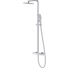 Cuerpo del mezclador de latón. mango de ducha de 3 funciones. Manguera de PVC de 1,5 m. Rociador fino 15x 25 cm de acero inoxidable. Rociador termostático. EasyClean.