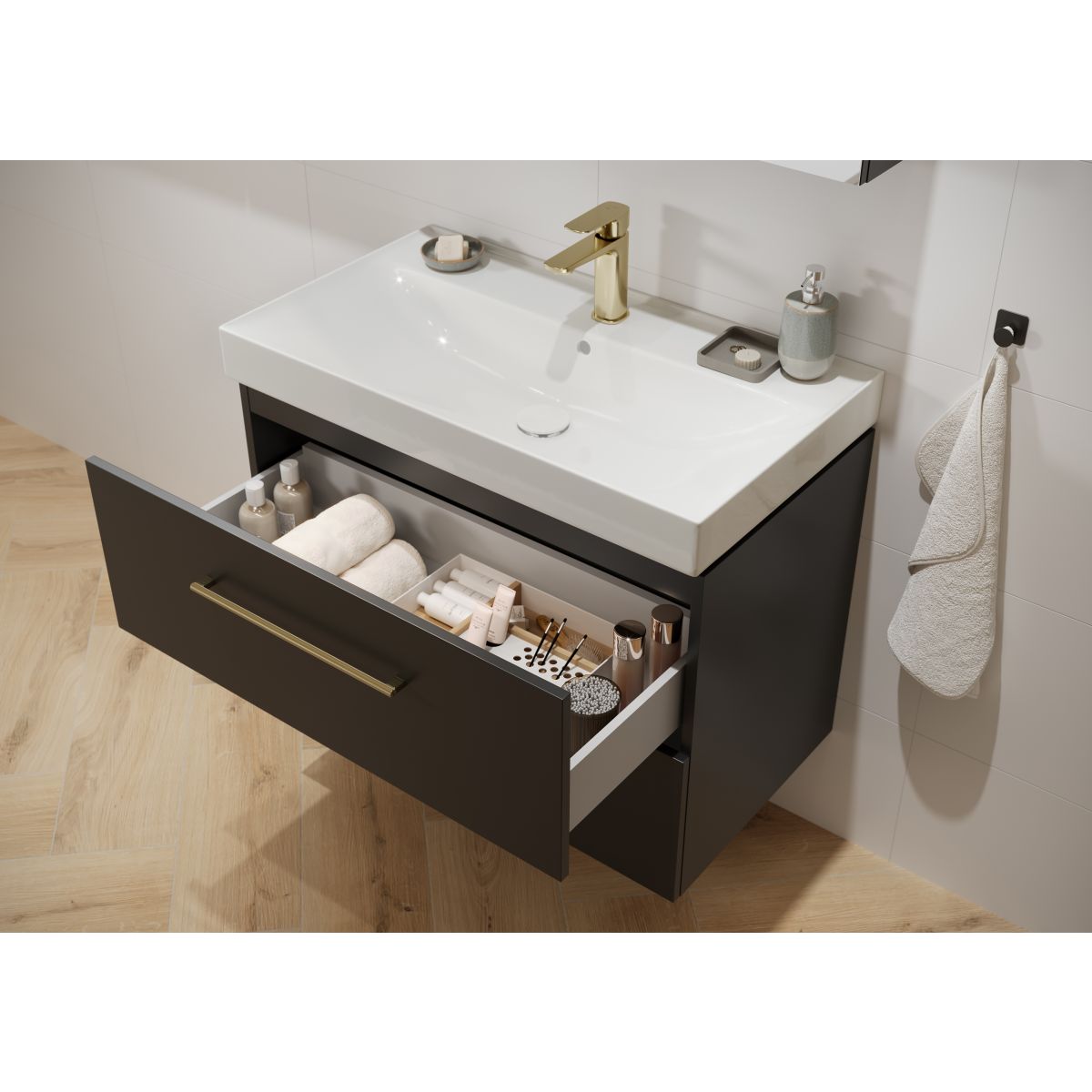 Tirador minimalista dorado para muebles, moleteado.
