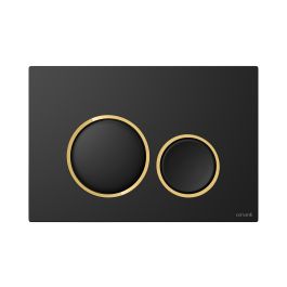 El botón de empotrar LUNA by Cersanit RING negro mate con anillos decorativos en dorado brillante es una propuesta inspiradora tanto para interiores modernos como clásicos, dirigida a clientes que aprecian la diversidad estilística. La forma y las formas utilizadas en el diseño del botón armonizan perfectamente con la cerámica. Los anillos decorativos que rodean los botones aportarán un sutil detalle que acentuará el carácter del interior y le dará singularidad y elegancia. La placa de cisterna es apta para un sistema de cisterna baja de dos piezas. La placa de cisterna es compatible con los sistemas de instalación previa a la pared AQUA y SYSTEM. Funciona con FRESH SYSTEM, que es la solución ideal en combinación con la tecnología CleanOn sin reborde, en la que la ausencia de reborde no excluye el uso de refrescadores. Esta solución completa y moderna garantiza una higiene integral en el inodoro. El refinado diseño del botón garantiza una instalación fácil y rápida.