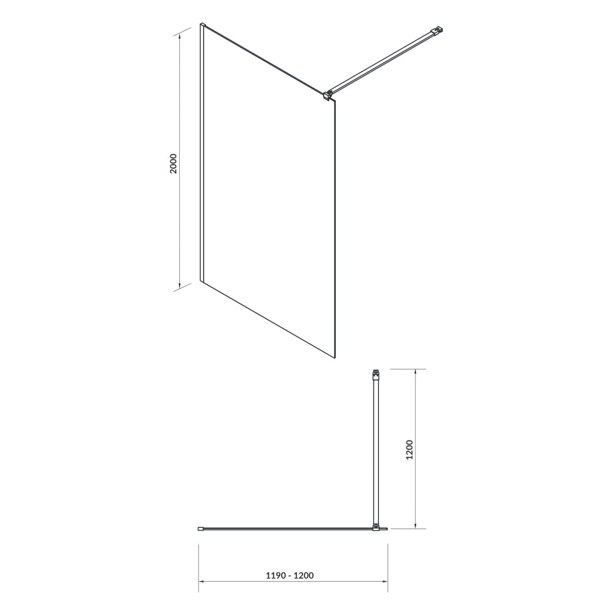Cersanit Mille mampara de ducha walk-in 120 cm negro mate/vidrio transparente S161-004