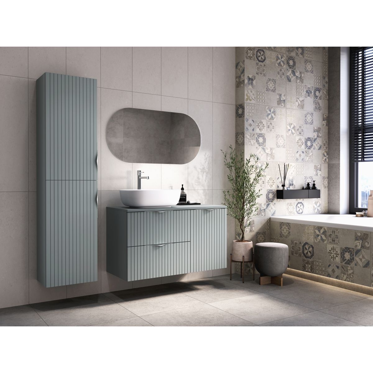 La colección de muebles de baño TIRSO es un concepto bien pensado que, gracias a la combinación de diseño elegante y soluciones funcionales, se convierte en una propuesta ideal para quienes buscan el máximo confort. El concepto estético mantenido en un estilo minimalista permitirá libertad de disposición en cualquier cuarto de baño. La modularidad de los muebles permitirá una gestión óptima del espacio, mientras que el delicado acanalado de las superficies onduladas añade una sutil expresividad al interior.