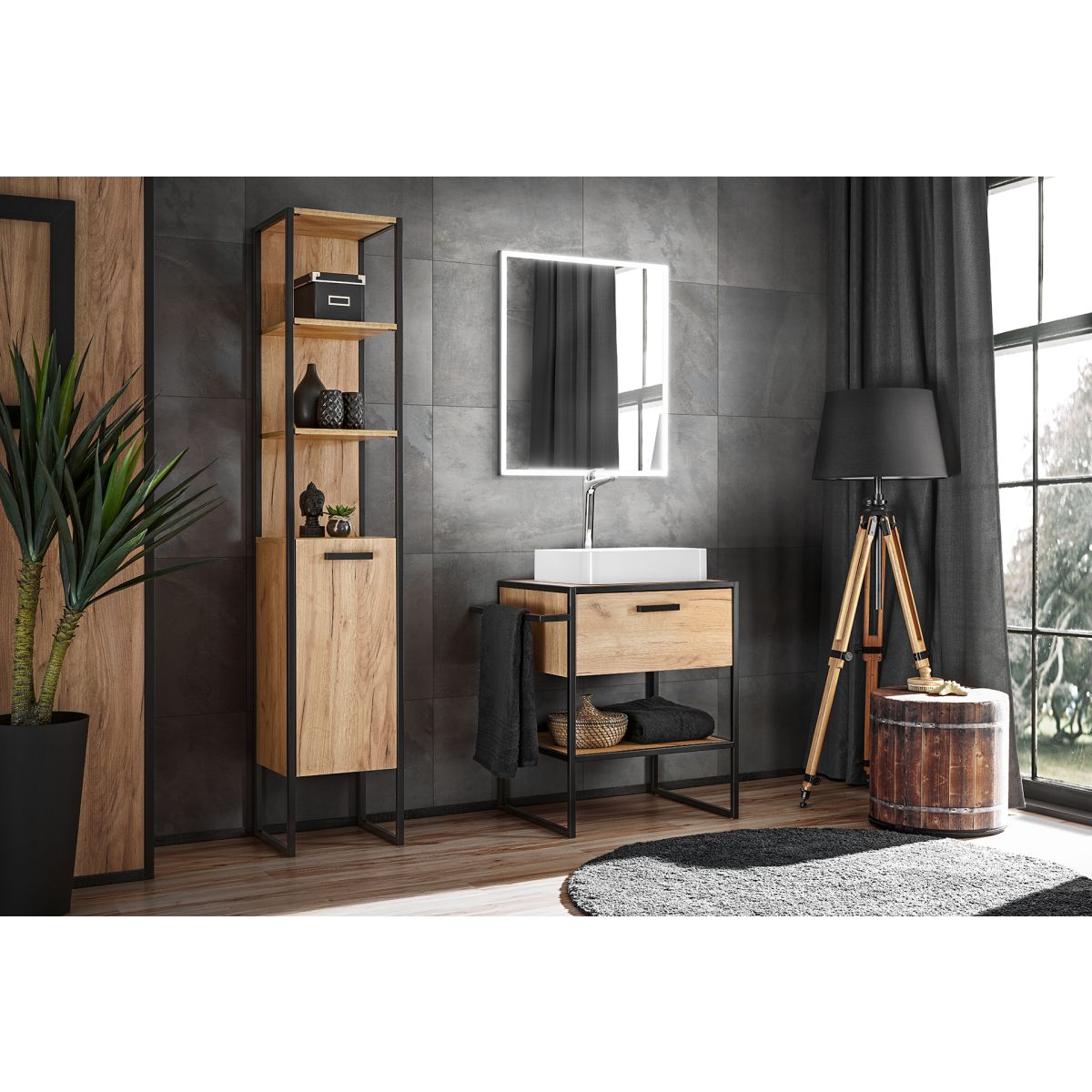Modernidad, formas sencillas y estilo son sólo algunas de las características que distinguen a la colección de muebles de baño Brooklin. La colección debe su diseño moderno e industrial a una combinación atemporal de metal y madera. Se adapta perfectamente a interiores modernos, loft e industriales. Aportará carácter a cualquier estancia. La colección incluye lavabos de varios tamaños, una barra alta y un espejo, lo que permite componer un conjunto que combine con cualquier interior.