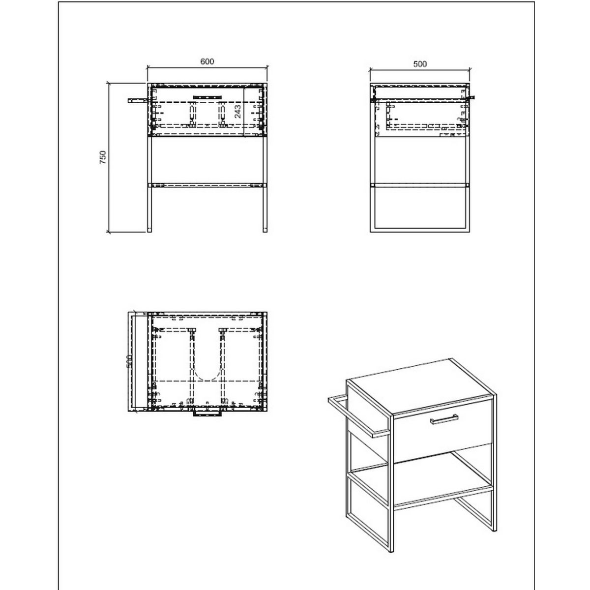 - material del armario: tablero laminado de 16 mm / marco de metal