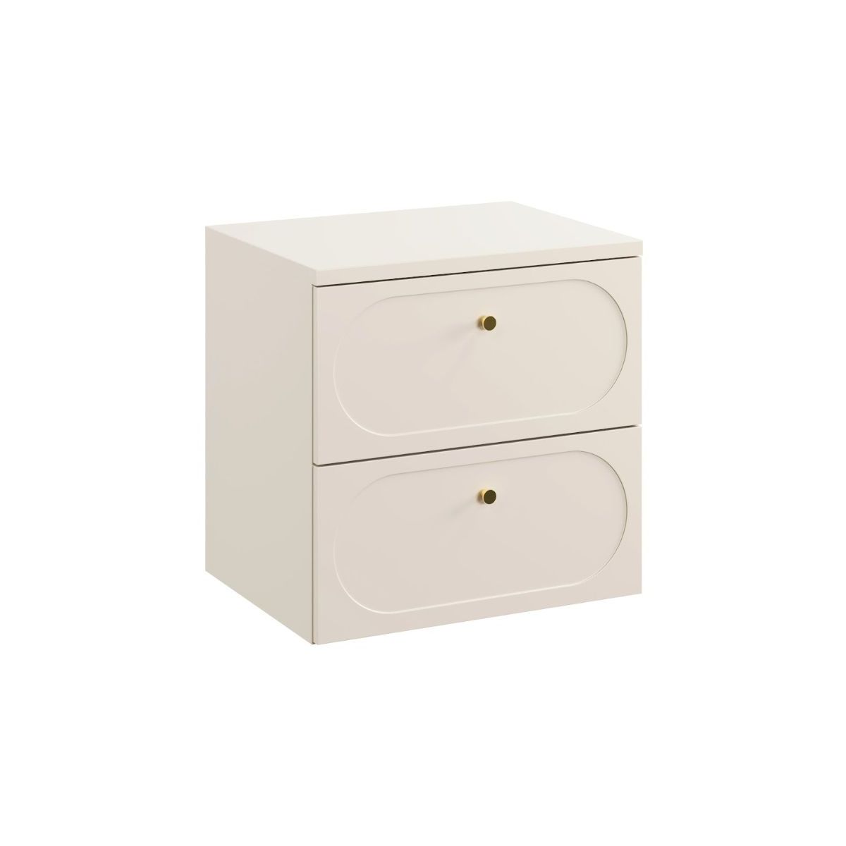 El mueble bajo lavabo de 60 cm con dos cajones de la colección Donna Sand es una reinterpretación moderna del estilo clásico, inspirada en la sutileza. Los delicados frentes con fresados redondeados confieren a la colección un carácter y una ligereza únicos. La decoración Sand Beige utilizada en la colección es una variación del tema de los colores cachemira, que han dominado las tendencias de interior, aportando calidez y armonía a los interiores. Toda la colección se complementa con pomos de metal dorado, que acentúan la elegancia y aportan un acabado refinado.