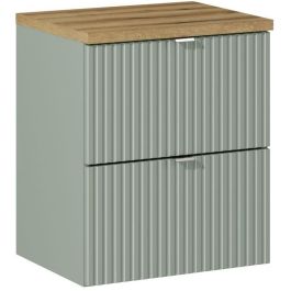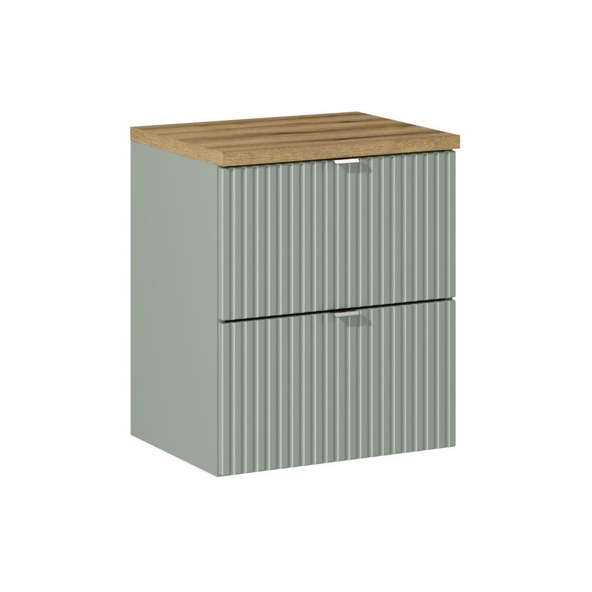 El primer componente del conjunto es el mueble de lavabo LINE REED GREEN D 82-50-2S, que ofrece un espacio de almacenamiento adecuado para cosméticos y accesorios de baño. El segundo componente es la encimera NOVA OAK A 89-50, que complementa a la perfección todo el conjunto.