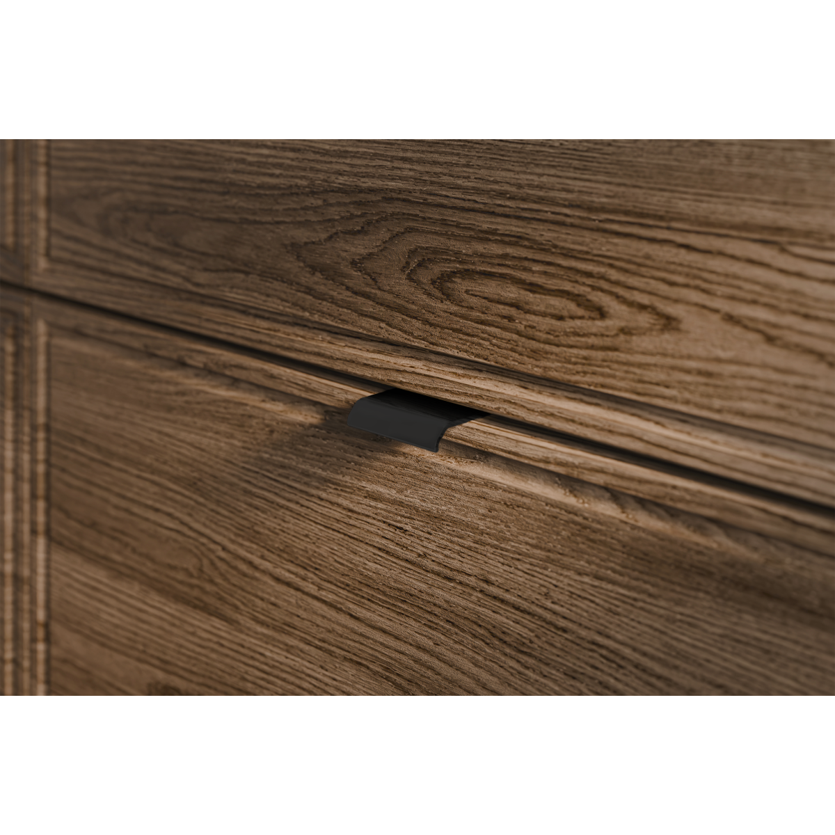 El mueble de lavabo de 60 cm con dos cajones de la colección Talia Casella combina la elegancia clásica con el estilo moderno. Los característicos frentes con un sutil marco fresado llaman la atención por su forma atemporal, mientras que la decoración en roble Casella reproduce a la perfección la belleza natural de la madera, aportando calidez y armonía al interior. Los cuerpos de mueble en negro mate intenso confieren a la colección un aire distintivo y contemporáneo. La colección también ofrece la posibilidad de personalizar los armarios de lavabo gracias a los tres colores de los tiradores incluidos -dorado brillo, cromo brillo y negro mate-, lo que permite adaptar los muebles a las preferencias individuales.