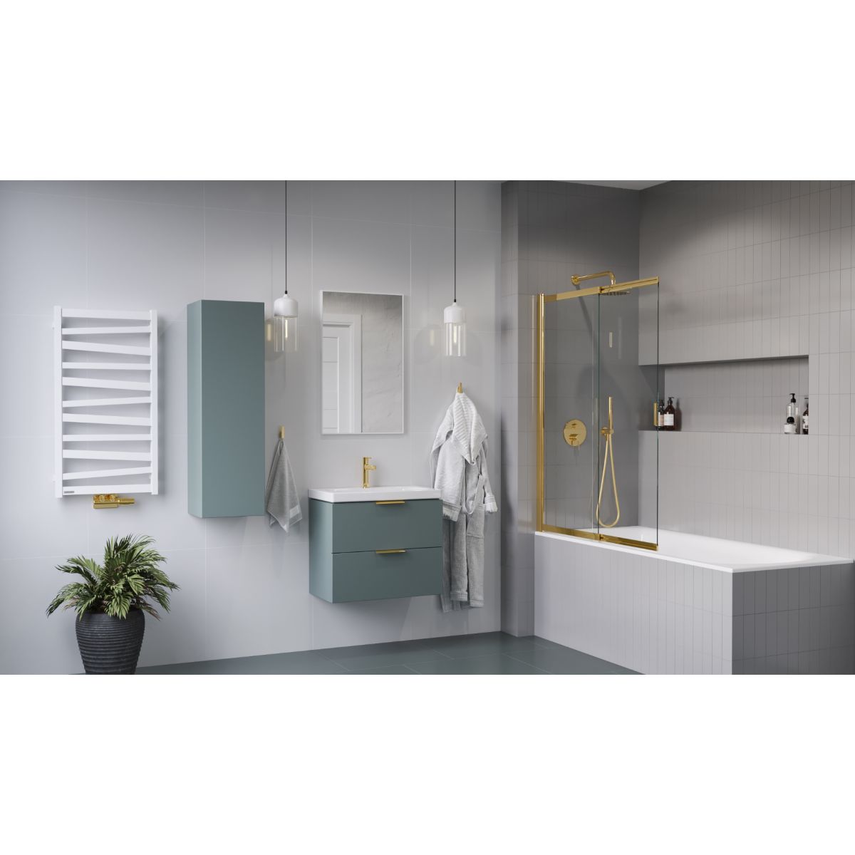 La nueva serie de muebles Blanko es la opción ideal para quienes desean equipar un cuarto de baño pequeño con muebles funcionales y compactos. Armario para lavabo de 49 cm en negro mate. Su profundidad es de solo 37 cm, lo que hace que quepa incluso en el baño más pequeño, y su uso sigue siendo cómodo gracias al lavabo especialmente perfilado. Los frentes del armario están lacados con la tecnología de mayor calidad y garantizan la protección del mueble en un espacio tan exigente como es el cuarto de baño. Los colores propuestos se utilizan actualmente con mucha frecuencia en el diseño de cuartos de baño, ya que combinan bien con otros colores de la estancia. El armario está equipado con guías Hettich (extraíbles en ¾) con cierre silencioso, y el cajón superior tiene un organizador de madera incorporado. El conjunto incluye 2 tiradores de aluminio en color dorado brillante.