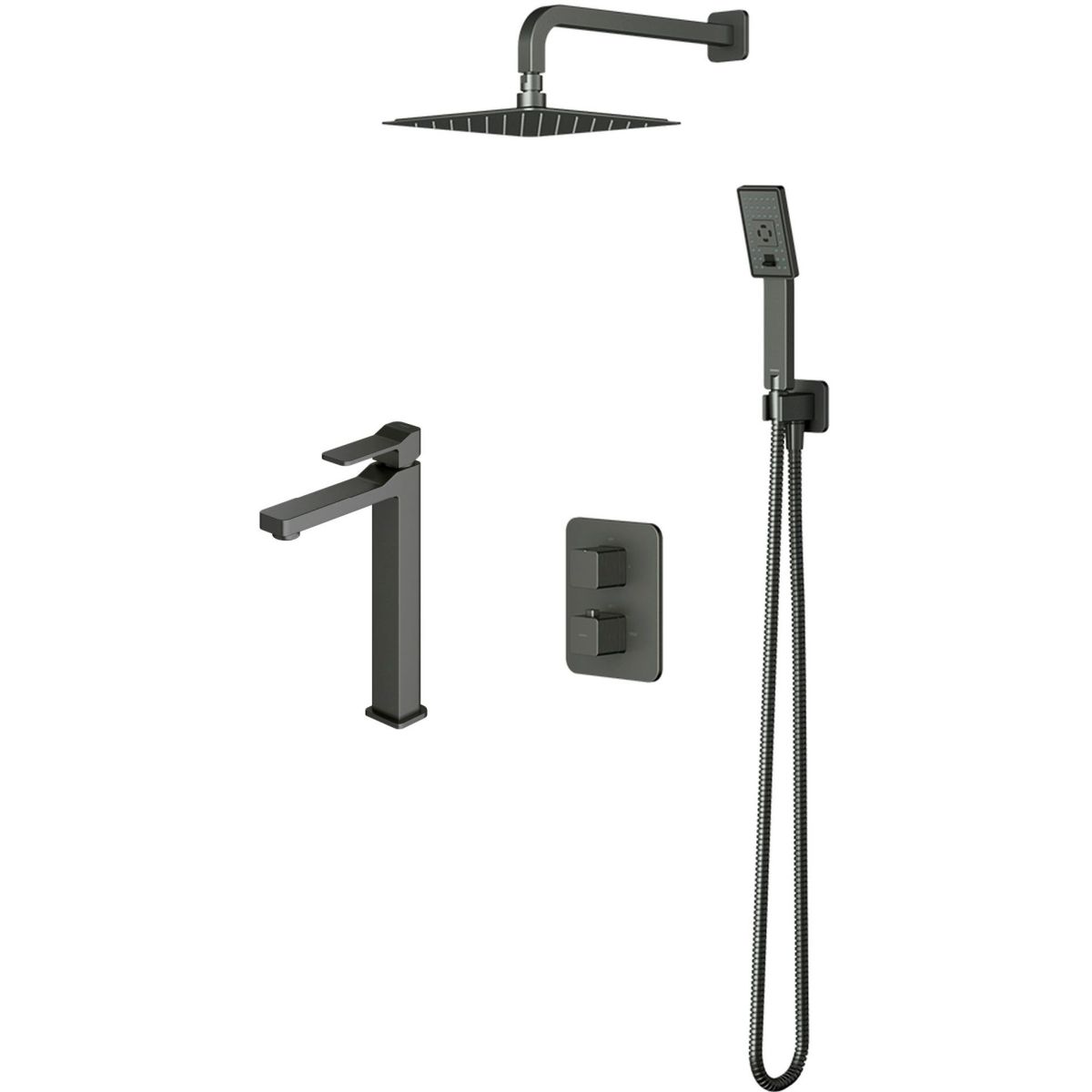 2. Omnires Slide juego de ducha empotrado termostático con ducha de lluvia grafito