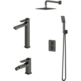 2. Conjunto de ducha termostática empotrada Omnires Slide con rainshower grafito