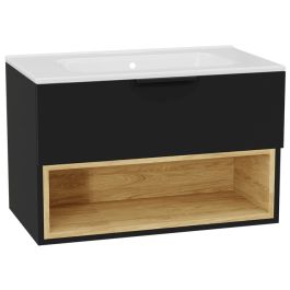 Mueble de lavabo moderno Tuto 2.0 con un cajón de gran capacidad y un práctico compartimento de almacenamiento abierto. Los frentes se suministran completos con tiradores. Todos los frentes son de un color a juego con el cuerpo del armario. El armario combina a la perfección funcionalidad y diseño moderno. La variedad de configuraciones permite adaptar el mueble al estilo y las necesidades individuales de cada cuarto de baño. Los frentes de cajón se suministran con tiradores incluidos. El mueble y el cajón se suministran totalmente montados. Los frentes y la encimera/fregadero se montan independientemente.