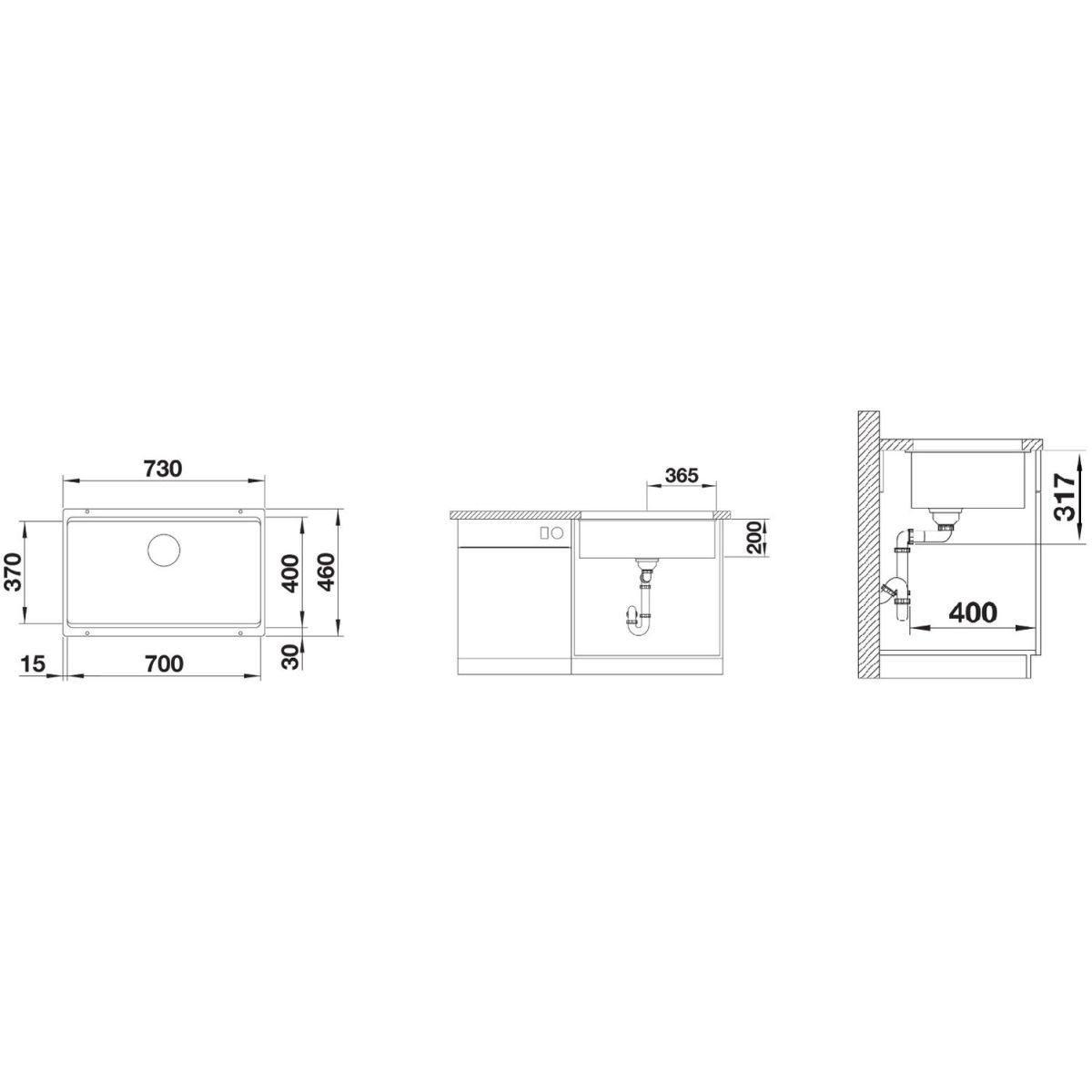 1. Blanco Etagon 700-U fregadero 73x46 cm con Silgranit PuraDur negro 525891