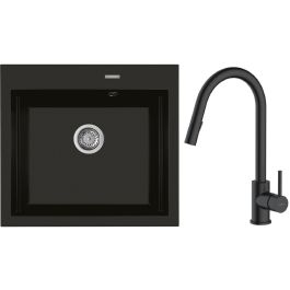 1.oltens Gravan Fregadero de granito de 1 seno 57x51,5 cm negro mate 72000300