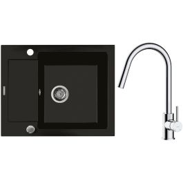 1. Oltens Gravan Fregadero de granito de 1 seno con escurridor corto 62x50 cm negro mate 72102300